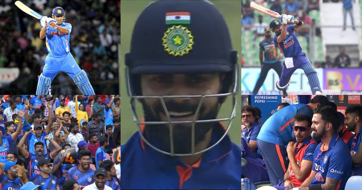 रविवार यानी 15 जनवरी को खेले गए मुकाबले में टीम इंडिया के विस्फोटक बल्लेबाज विराट कोहली (Virat Kohli) ने धमाकेदार पारी खेल एक बार फिर सबको प्रभावित किया। इस मैच में अपने वनडे करियर का 46वां शतक जड़ते हुए किंग कोहली ने 13 चौके और 8 छक्के लगाए। उनके हर चौके और छक्के पर फैंस उछलते-कूदते हुए नजर आए, लेकिन इस बीच उन्होंने एक छक्का ऐसा जड़ा जिससे फैंस को एमएस धोनी की याद आ गई।