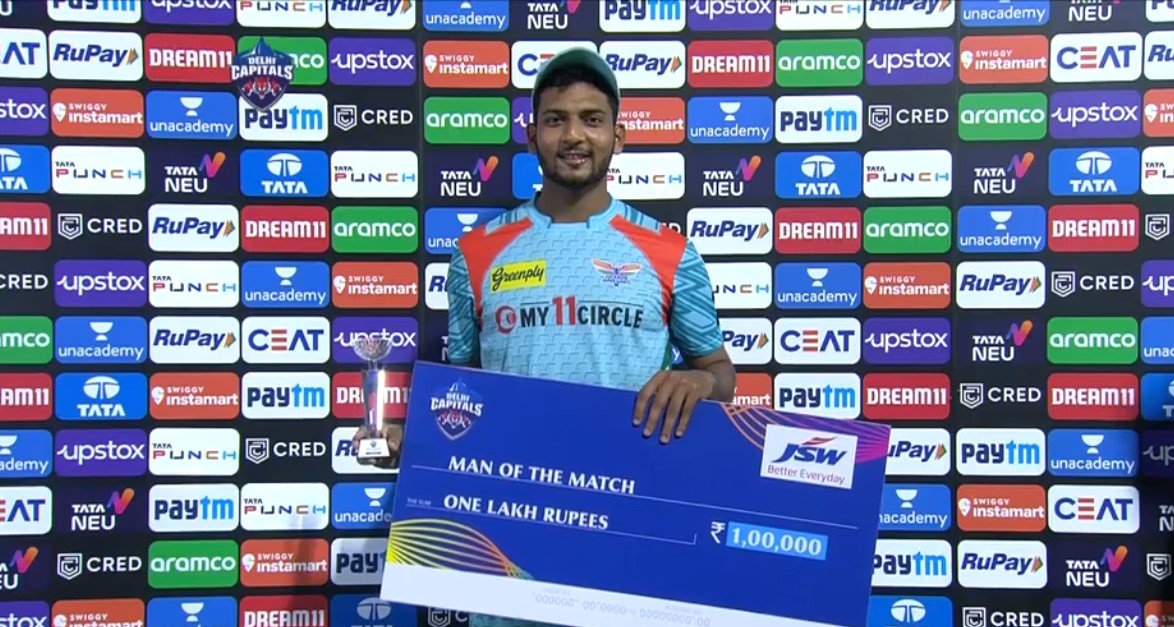 लखनऊ सुपर जायंट्स और दिल्ली कैपिटल्स के बीच खेले मैच में मोहसिन खान ने ला लखनऊ सुपर जायंट्स के लिए कुल चार विकेट अपने नाम किये। उन्होंने टीम के कप्तान ऋषभ पंत को भी आउट किया, जिसके बाद खान ने मैच प्रेज़न्टैशन में कहा कि उन्होंने ऋषभ के विकेट का लुत्फ उठाया। मैन ऑफ द मैच मोहसिन खान ने कहा,